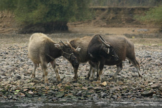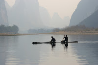 Tänaseks plaaniks oli teha paadimatk mööda Li jõge. Tänavatel asuvates turismifirmades pakuti antud reisi hinnaga 280 RMB - 380RMB sõltuvalt mugavusastmest. Loeme oma tarka raamatut ning usume, et suudame ka ise jõe äärde kohale jõuda ning endale sobiva paadi kaubelda. Võtame takso ja kindluse mõttes mainime taksojuhile, et viigu meid sinna bussijaama, mis ühendab Guilini ja Caopingi linna (talvisel ajal jõematka alguspunkt). Saame tunda tuntud turistidele tehtavat trikki, sest taksojuht väidab oma suurte (tegelikult üsna väikeste ja kriipsusarnaste) siiraste silmadega, et sellist bussi pole olemaski ja et ainus võimalus on see, kui tema meid aitab. Loomulikult mõningase vaevatasu eest (100 RMB). Jääme enestele kindlaks ning nõuame bussijaama. Bussijaam on suhteliselt segase ülesehitusega, kuid lõpuks leiame pisikese pilu, kust õnnestubki saada piletid bussile (8 RMB'd inimene), mis meid vajalikku kohta ka toimetab. Buss on ~ 16 kohaga maaliini buss. Seltskond saab kirju olema. Enne väljasõitu