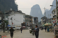 Jõudes Yangshuosse (tõlkes hele kuu) selgub, et busse Guilini poole läheb iga natukese aja tagant, seega otsustame ka selle linnakesega lähemat tutvust teha ning keha kinnitada. Selleks leiame peatänavalt The Stone Rose nimelise restoran-pubi ning vaatamata meie tühjadele kõhtudele maitseb toit siin tõesti hästi. Ka inglise keelt mõistavad nad siin rohkem rääkida, kui Guilinis. Suviti pidi linnake kubisema matkajatest. Hetkel oleme ühed vähesed. Peatänava ääres asuvad müügikohad on oma majafassaadidega rohkem vaeva näinud, kui Guilinis. Palju on kasutatud puitu ja nikerdusi, mitte lihtsalt labane valguskast või banner üle maja.