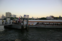 Kuna oleme juba mõnda aega jalutanud, tahame taaskord abi paluda, kuid mööduv tütarlaps lausa põgeneb meie eest. Kui ümber nurga astume, jõgi juba paistabki ning rohkem me inimesi ei tülita. Kuni piletikassani. Piletid jõelaval maksavad 9-13 bahti olenevalt marsruudist, mis on tähistatud kolme erineva lipuga - sinine, kollane, oranz. Meil on vaja oranzi lipuga laevale saada ning tasume piletite eest kokku 26 bahti.
