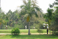 rahva golfilembuse suhtes, leiame eest rohkem rahvast, kui nii mõnigi kord kodumaa mänguväljakutelt. Klubihoone on väsinud ilmega, kuid väike poeke ja restoran täiesti olemas. Kohalikele on mängutasu 4 000 kyati!!!, turistile nädala sees 15 USD ja nädalavahetusel 20 USD. Võtame kohad sisse restoranis, et teha kerge lõuna ning jälgida rahvast. Kuna menüü on ainult birma keeles, siis seda meile isegi ei tooda. Kutsutakse hoopis noormees, kes oskab inglise keelt ning loeb meile ette mõned variandid menüüst. Et olukorda mitte keeruliseks ajada, võtame mõlemad praetud riisi kanaga ning 3 karastusjooki. Hindasid ei küsi, riskime. Söök on hea ning arve ajab muigama. 6 000 kyati. Proovi sa Eestis mõnes golfiklubis 60 eeku eest kahele inimesele süüa ja juua osta. No jah. 40 kroonisest mängutasust ei hakka heietamagi. Süda tilgub verd ja sülge voolab - nii tahaks mõne löögi teha.