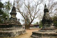 Edasi suundume linna kõrgema punkti, 100 meetrise Phu Si mäe poole, mille nõlvadel on mitmeid templeid ning tipus 24 meetrine That Chomsi stuupa. Inimesed, kes on siin maailma servas justkui juba piisavalt reisinud peaks teadma, et keskpäeval on kurjalt palav.
