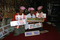 turistid neile kas raha, vihikuid, pastakaid, maiustusi vms. Ise samal ajal muretsedes, et kas ma ikka jäin pildile!!!! Mõni turist ronib oma kaameraga vaesele mungale suisa silm-näkku. Kuidas nad küll suudavad seda taluda? Kas nad ei tunne ennast nagu loomaaias? Vaatepilt tekitab meis tõelise vastikustunde, tahame siit kiiremas korras jalga lasta. Lahkudes märkame aga tõelist vaatamisväärsust. Väravate juurest leiame rivis kerjused, kellele mungad annavad ära äsja turistidelt saadud nänni!