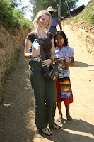 Laevuke on lihtne mootoriga parv, mille edasi-tagasi pileti eest küsitakse meilt kokku 2000 kyati (ilmselgelt turistihind). Teisele kaldale jõudes viipavad meile juba eemalt kaks ca 10 aastast last, kes tahavad meile postkaarte ja kaelaehteid müüa. Kuna me oleme sel hetkel ainukesed turistid, siis on neist raske lahti saada. Alice saab endale sappa postkaarditüdruku ja Marko kaelaehte poisi. Ei, me ei taha postkaarte ega kaelaehteid. Järgneb tavapärane jutt. Please! Lucky money! Postcard! Very cheap for you! Ja kui see jutt ei mõju, siis tuuakse välja trump. You beautiful! Noo jaa. Alice moosib vastu - Noo, you much more beautiful! Tüdruk ei jäta jonni - you little more beautiful! Ja nii jätkub see vaidlus paar minutit ning lõppeb lubadusega hiljem teema juurde tagasi tulla. Siis postkaartide ostmise teema.